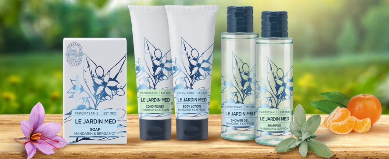 La delicata composizione di LE JARDIN MED con estratti biologici accuratamente selezionati di zafferano greco, salvia biologica e uva, insieme ad aromi raffinati ed emozionanti, trasporterà i vostri ospiti nei giardini più profumati del Mediterraneo. Ricette vegane e packaging ecologico, riciclato e riciclabile.