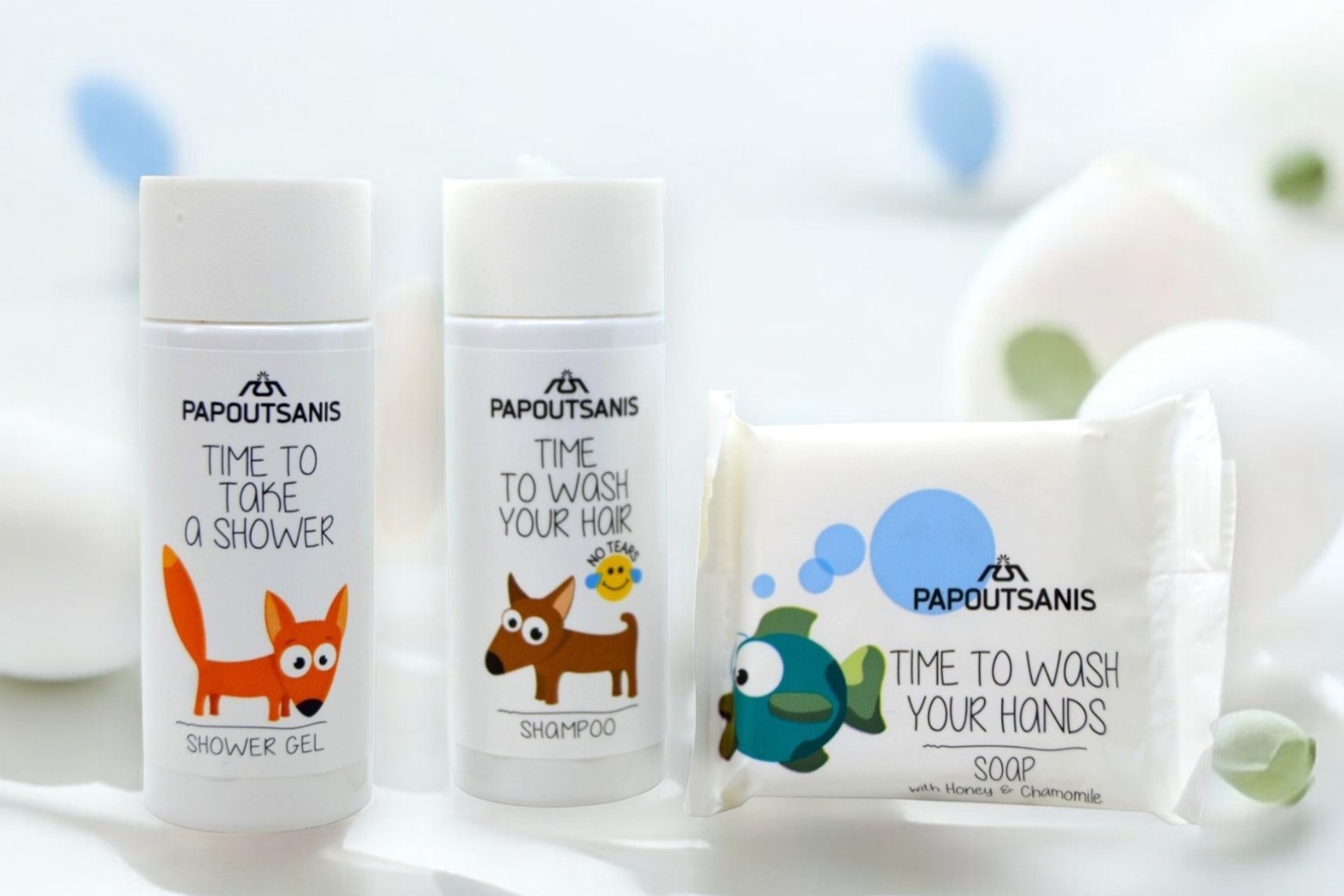 La collezione Papoutsanis KIDS, con i suoi aromi delicati, dermatologicamente e oftalmologicamente testati, è ideale per gli hotel pensati per le famiglie con bambini. Con questi cosmetici renderete il vostro soggiorno indimenticabile.