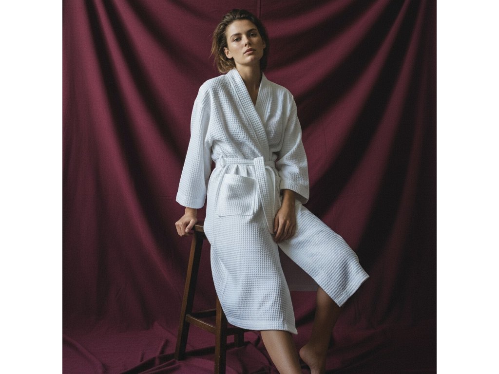 Accappatoio kimono WAFLE LUNA, bianco (280gr)