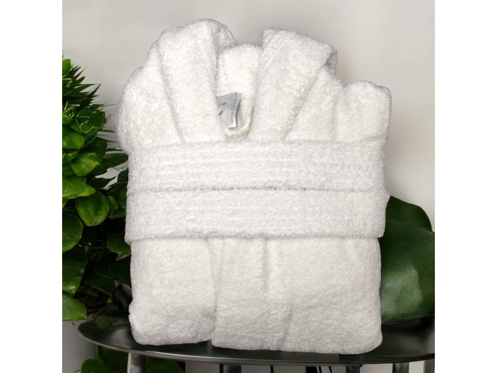 Il lussuoso accappatoio FROTE è realizzato in 100% cotone con un peso di 400 gr/m². Lavabile fino a 40°C, asciugabile in asciugatrice fino a 80°C, stirabile fino a 150°C. Il prodotto non deve essere candeggiato.
