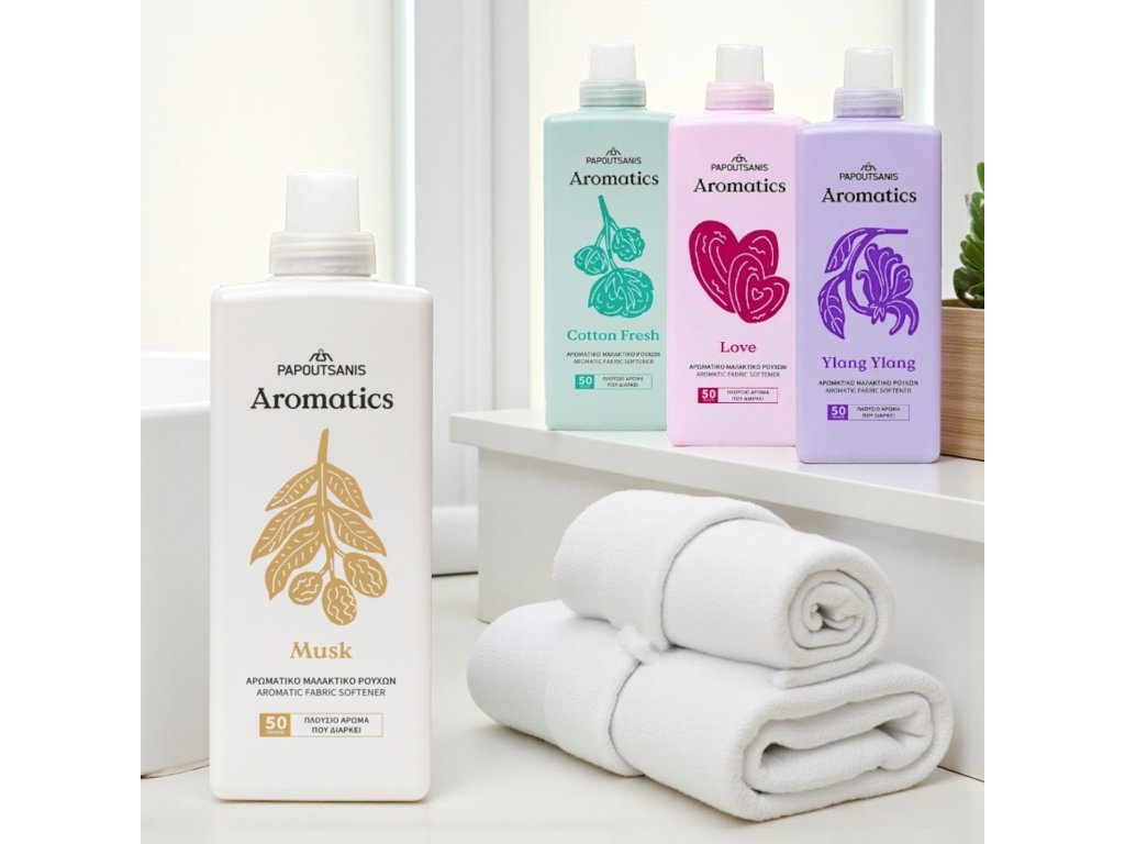 Nella vita quotidiana piena di "rumore", stress e richieste crescenti, c'è un momento che può riempirti di vitalità e ottimismo. Questo è il momento in cui la gamma Papoutsanis Aromatics ti solleverà e ti accompagnerà in un "viaggio" da sogno di ringiovanimento e lusso. Scopri l'intera gamma di prodotti per la cura della persona Aromatics, così come la nuova linea Aromatics NutriCare di gel doccia e lozioni corpo dalla texture morbida, con niacinamide e vitamina E, in tre irresistibili profumazioni: Olio di Argan Radiante, Crumb di Cocco e Vaniglia Calda, Mandorla Dolce e Fiore d'Arancio. 100% vegani, offrono una sensazione di idratazione, benessere e un profumo unico che ti accompagna per tutto il giorno. Allo stesso tempo, la nuova gamma di ammorbidenti concentrati Aromatics offre ai tuoi capi una cura ricca e accattivanti profumi di lunga durata che esaltano la tua personalità. Scegli tra quattro profumazioni uniche e trova quella più adatta a te, e goditi subito la tua fragranza preferita sui tuoi vestiti!