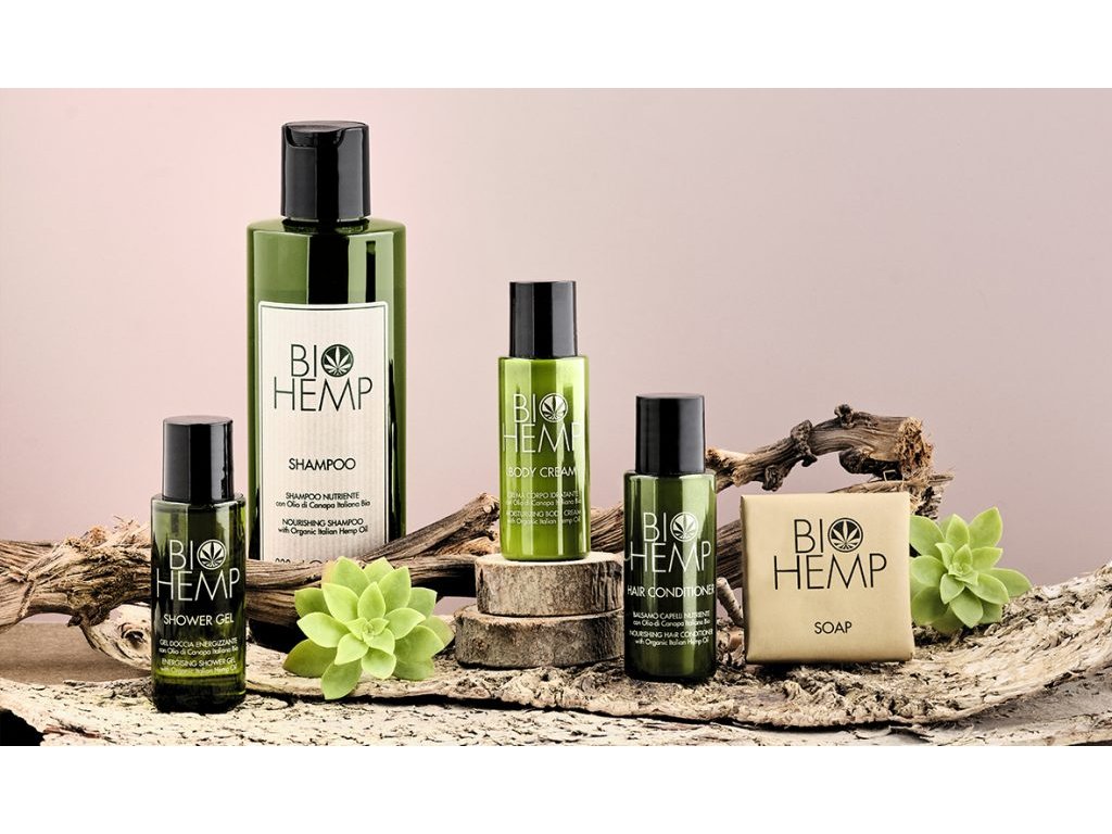 Bio Hemp è una collezione di prodotti sostenibili, poiché flaconi, tappi ed etichette sono realizzati con materiale riciclato e riciclabile al 100%, garantendo un impatto ambientale minimo. La sua formula è arricchita con olio di canapa biologico italiano dalle eccellenti proprietà antiossidanti e idratanti.