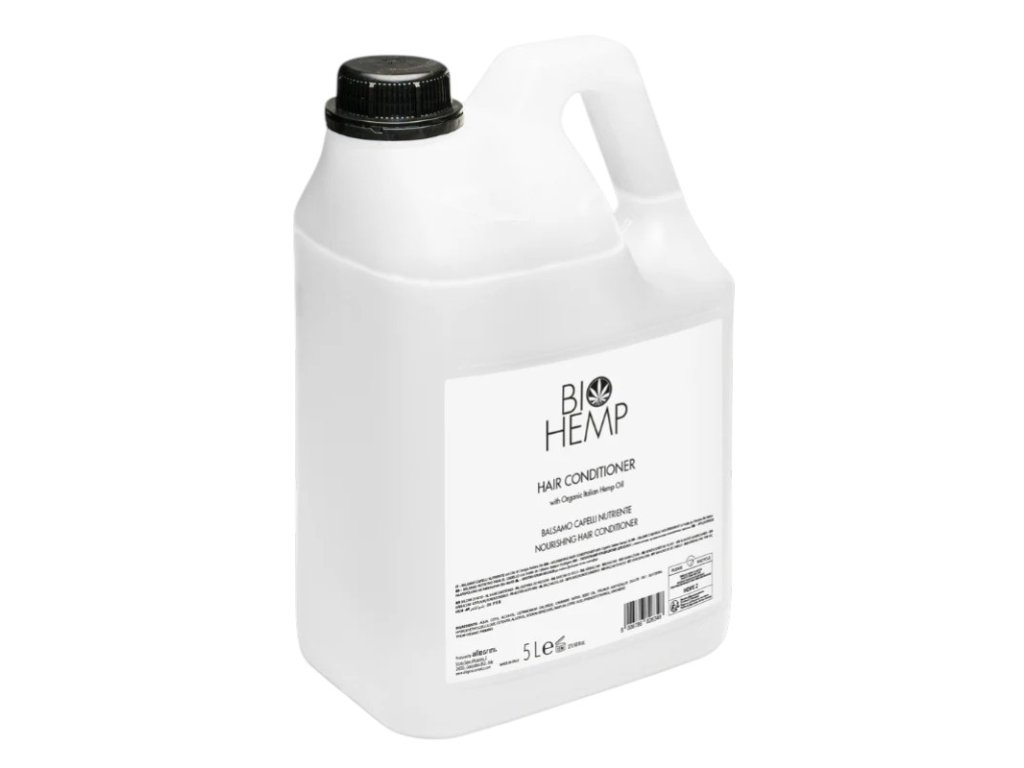 Balsamo per capelli in flacone da 5 litri con olio di canapa biologico italiano. Dermatologicamente testato, prodotto in Italia da ALLEGRINI.