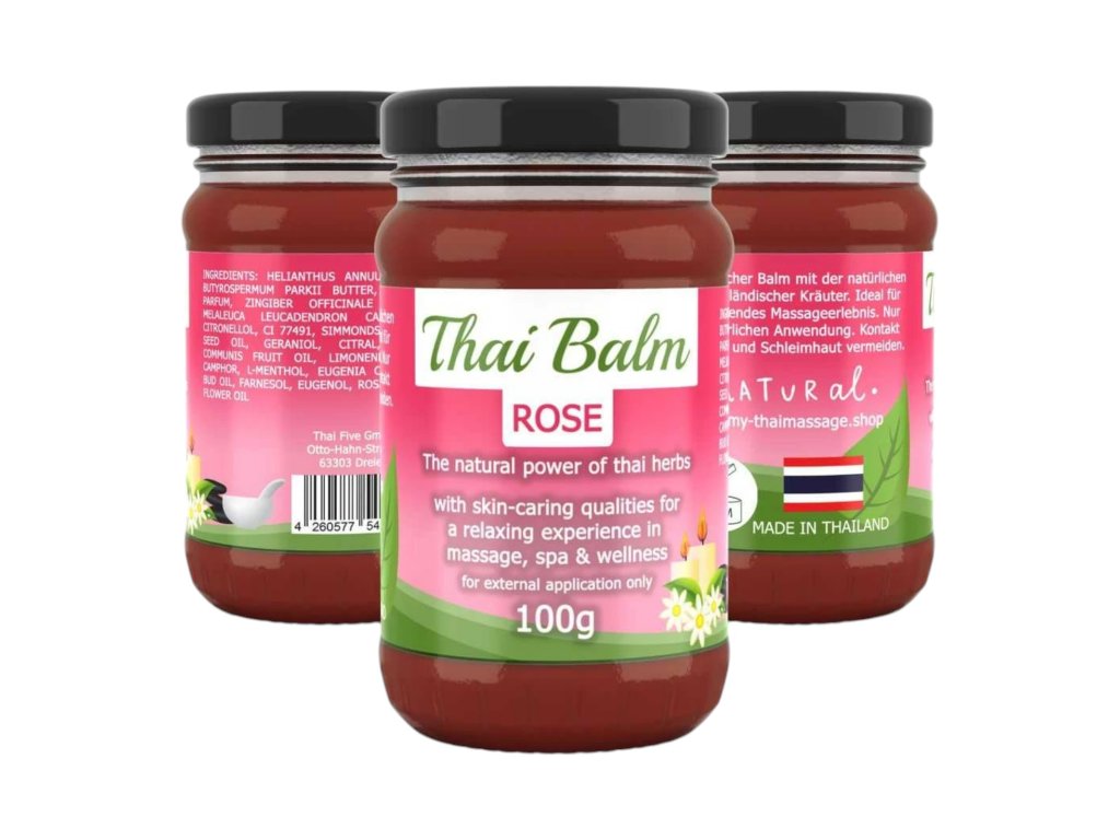I nostri balsami da massaggio alle erbe thailandesi si basano su una formulazione adattata alle normative europee. Si tratta di un prodotto cosmetico e pertanto ha solo un leggero effetto riscaldante.