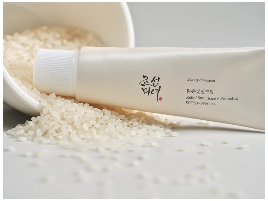 Beauty of Joseon - Relief Sun Rice Probiotics - SPF50+/PA++++ - La crema protegge dagli effetti nocivi dei raggi UVA e UVB. Contiene il 30% di estratto di riso, che ha effetti antiossidanti e neutralizza i radicali liberi causati dai raggi UV, e filtri chimici, che impediscono efficacemente ai raggi solari di penetrare negli strati più profondi della pelle. Il prodotto è stato ulteriormente arricchito con biofermento di batteri lattici, che idrata e previene la comparsa di imperfezioni, oltre ad adenosina levigante e vitamina E nutriente. La crema si assorbe rapidamente, ha una gradevole profumazione e offre un finish satinato e luminoso che dona alla pelle un effetto "pelle di vetro". La crema ha una consistenza leggera, non è appiccicosa e non lascia una patina bianca. Prodotto vegano a base di ingredienti di origine naturale.