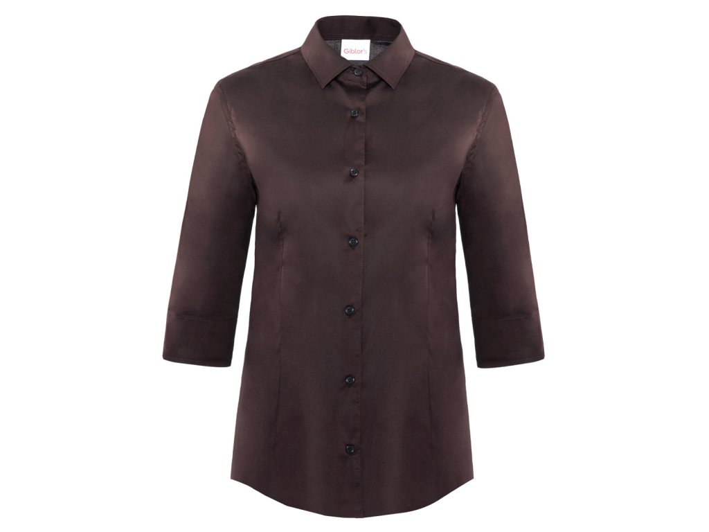 Sofisticata camicia Flavia da donna con maniche a ¾, realizzata in cotone elasticizzato. Presenta un colletto classico, una vestibilità slim e una chiusura frontale con bottoni coordinati.