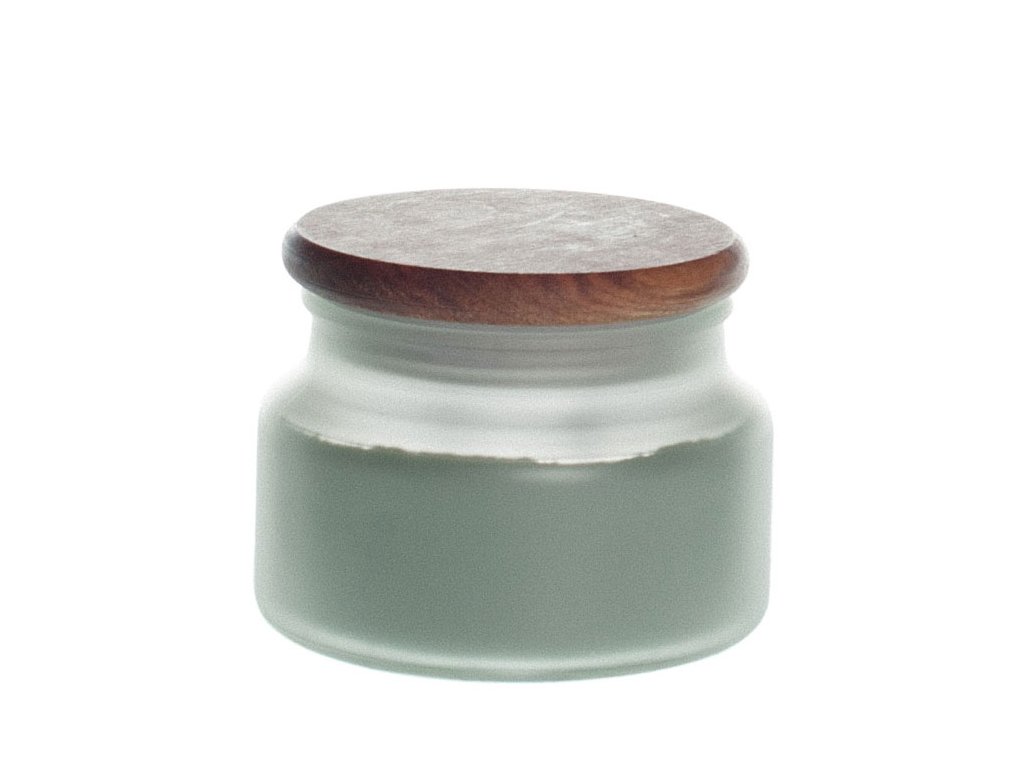 Contenitore in vetro con vetro satinato e coperchio in legno