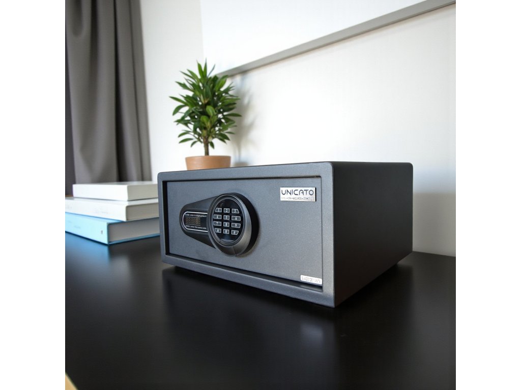 La cassaforte per hotel HAMAL è adatta a qualsiasi stanza, ufficio o casa. I codici sono facili da programmare e la tastiera digitale consente un facile accesso alla cassaforte utilizzando un codice utente o un codice master. Ideale per chi utilizza la cassaforte frequentemente (ospiti dell'hotel).