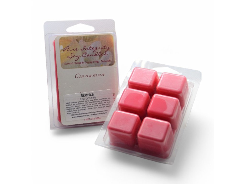 La cera profumata è la stessa cera di soia usata per le candele, colata in uno stampo di plastica con 6 cubetti.