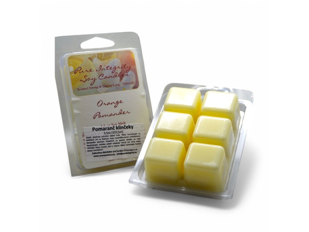 La cera profumata è la stessa cera di soia usata per le candele, colata in uno stampo di plastica con 6 cubetti.