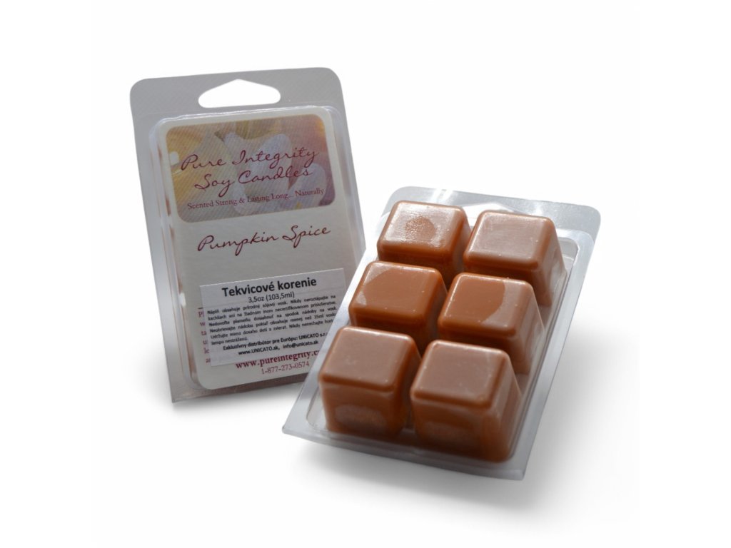 La cera profumata è la stessa cera di soia usata per le candele, colata in uno stampo di plastica con 6 cubetti.