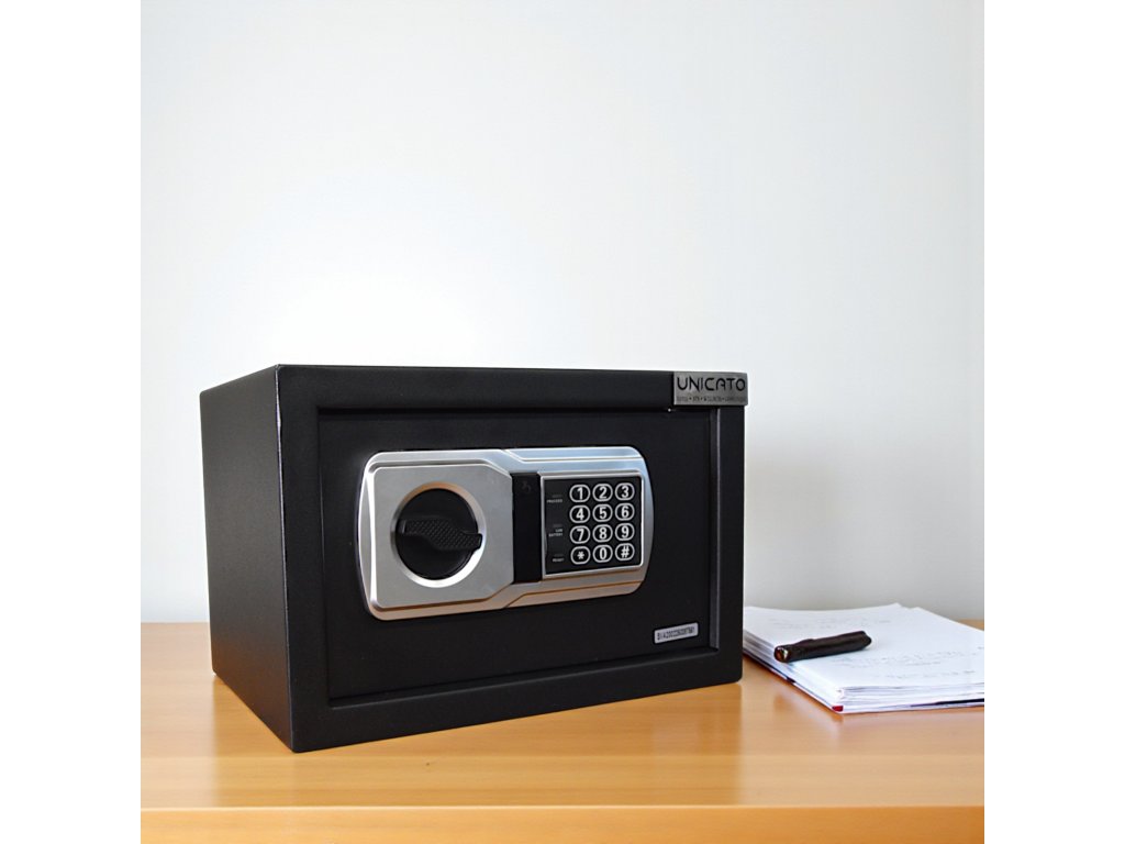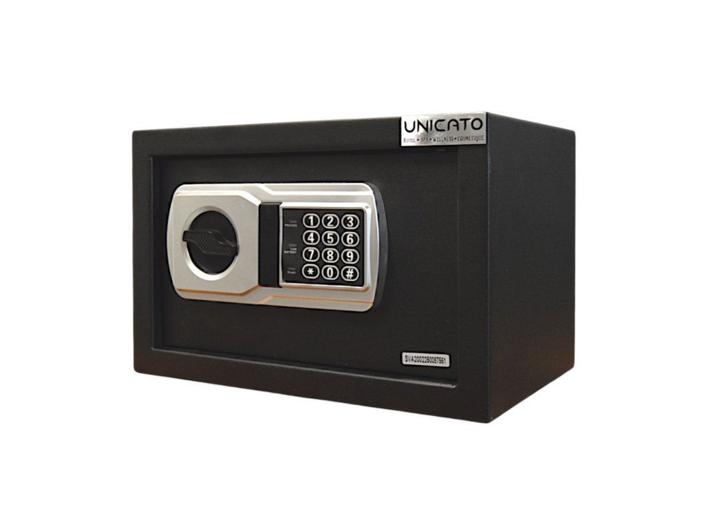Cassaforte di sicurezza per hotel ENIF - Proteggi i tuoi oggetti di valore con cura. La cassaforte Enif può contenere comodamente un'ampia gamma di oggetti, tra cui documenti, passaporti, gioielli, contanti e altri oggetti di valore. Che tu stia partendo per una lunga vacanza o semplicemente per andare al lavoro, scopri la tranquillità di sapere che i tuoi beni preziosi e importanti sono protetti. La cassaforte Enif è ideale anche per l'uso nel settore alberghiero o aziendale.