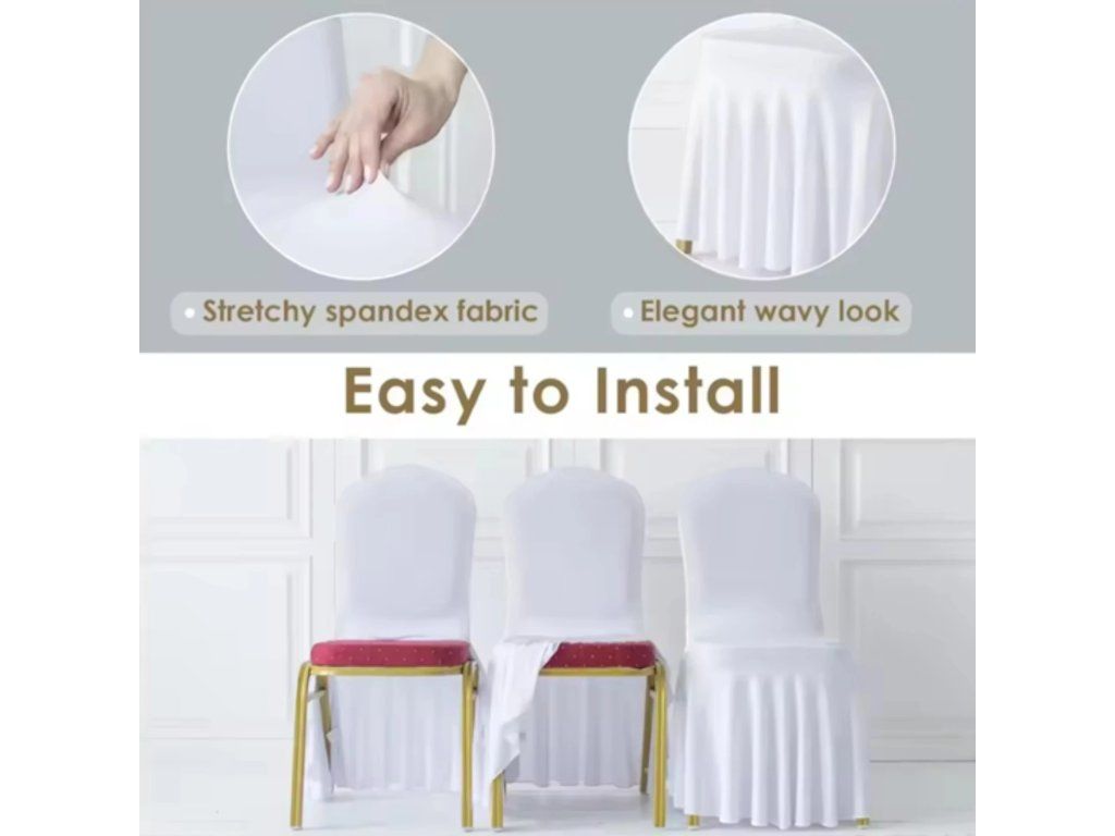 Realizzati in 95% poliestere e 5% elastan (spandex), grazie alle cuciture accurate, sono elastici, antipiega, morbidi e flessibili. Possono essere riutilizzati più volte. Lavabili a mano con un detergente delicato, in lavatrice o a secco. Sono progettati per proteggere le sedie da graffi e macchie. Il design elegante e raffinato della gonna copre facilmente le gambe rigide delle sedie, conferendo un aspetto unico e raffinato. Rinnovano sedie vecchie, danneggiate o poco attraenti, aggiungendo un tocco di lusso. Si applicano semplicemente sulla sedia, risparmiando tempo e fatica. Ideali per sedie senza braccioli e non adatti a sedie pieghevoli. Perfetti per eventi privati e aziendali, come feste di compleanno, matrimoni, meeting, banchetti, ecc.
