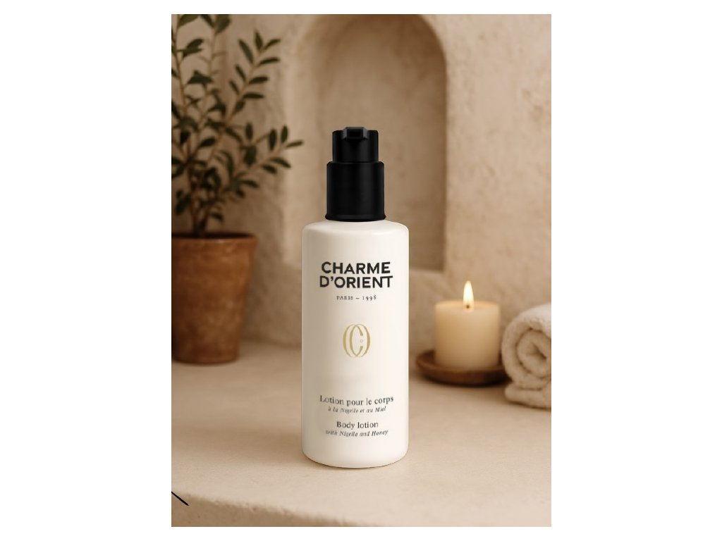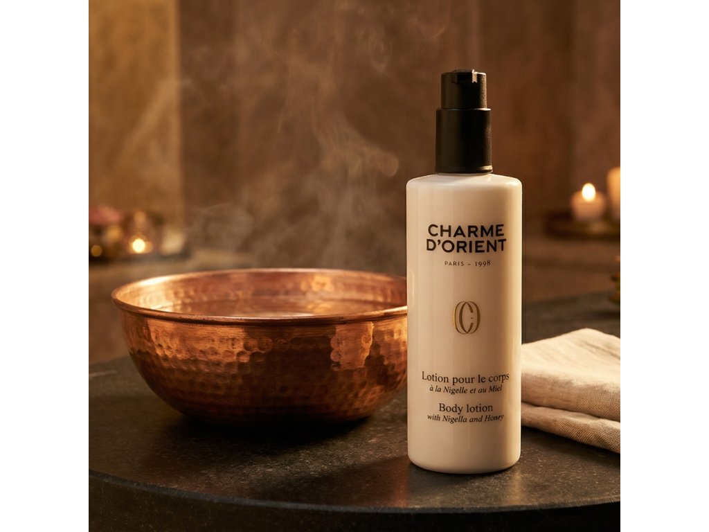 Da Charme d’Orient, ogni utilizzo inizia con un invito a risvegliare i sensi. La nostra esclusiva esperienza olfattiva – Plateau d’Olfaction – ti immerge in un rituale di profumi unico prima di prenderti cura del tuo corpo. Chiudi gli occhi... Fai un respiro... Lasciati trasportare dalle emozioni evocate dalle nostre fragranze, accuratamente realizzate per rendere omaggio agli aromi più poetici e sensuali dell'Oriente. In questa collezione, offriamo un profumo morbido e caldo di miele e Nigella che ti trasporterà nel relax e nel benessere.