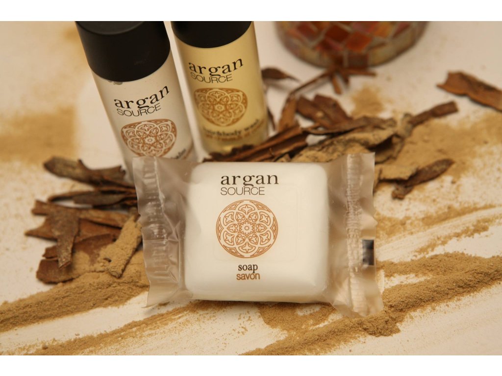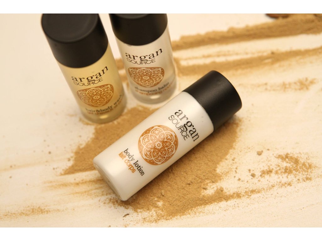Cosmetici per hotel ARGAN SOURCE, a base di olio di argan biologico. Un elisir di bellezza diventato un must della cosmesi grazie ai suoi antiossidanti. Svolge inoltre un'azione emolliente e idratante. L'incantevole fragranza e l'elegante finitura satinata trasporteranno i vostri ospiti nell'atmosfera del Marocco. Qualità sofisticata ispirata all'oro del deserto.