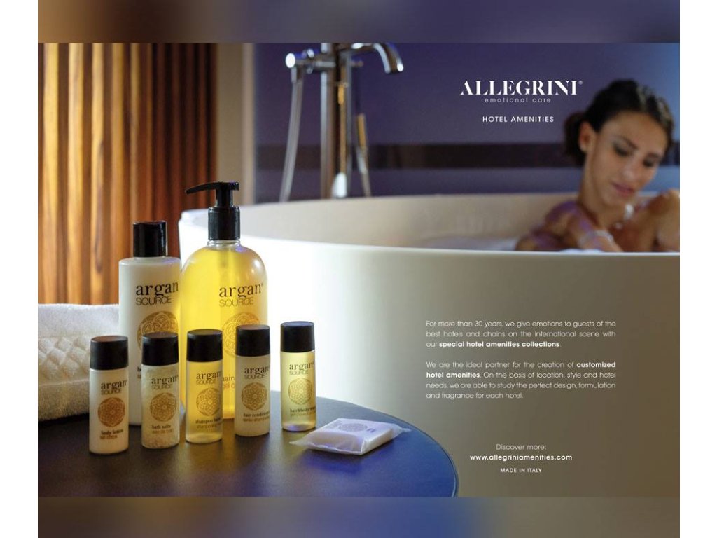 Allegrini Amenities Italy opera nel settore cosmetico da oltre 30 anni, conquistando una solida posizione tra i leader mondiali nel settore dei servizi alberghieri, sia nella produzione che nella distribuzione. Rispetto per la tradizione, eccellenza, origine orgogliosamente italiana e ambizioni internazionali: la bussola che guida l'azienda ha una sola direzione: 100% Made in Italy di altissima qualità.