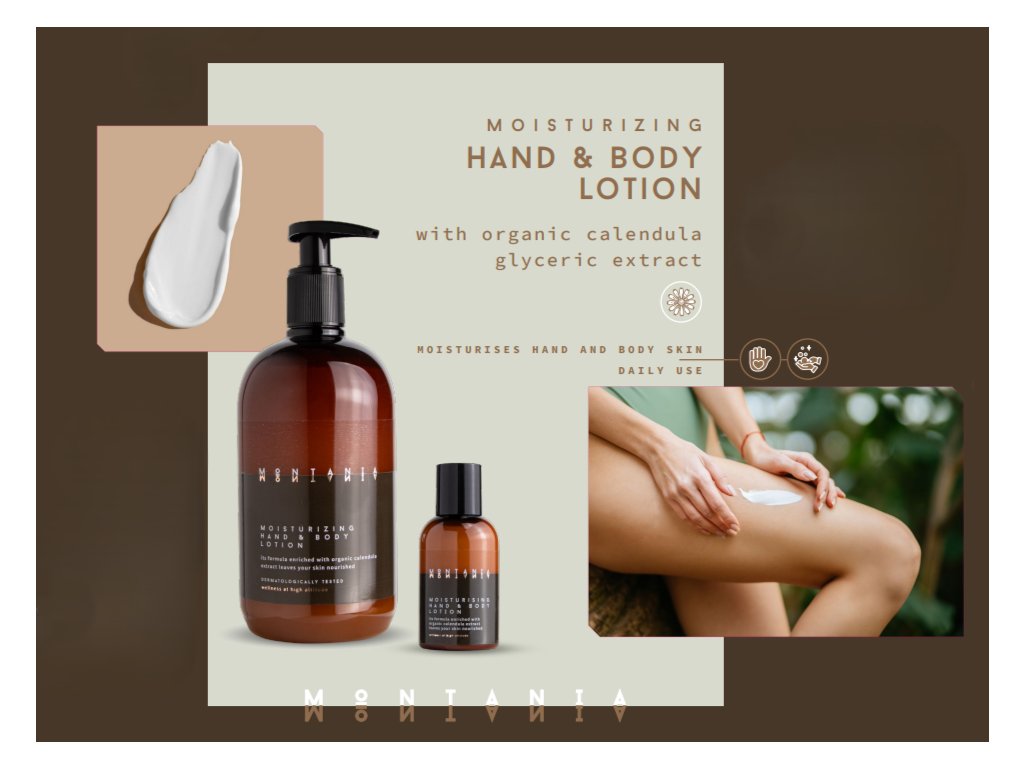Crema corpo idratante MONTANIA dell'azienda italiana ALLEGRINI, con estratto di calendula in glicerina biologica. Lascia la pelle morbida e vellutata, come accarezzata dalla rugiada mattutina. Dermatologicamente testata, senza siliconi e coloranti.