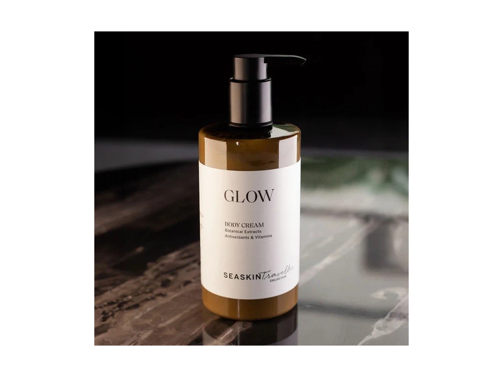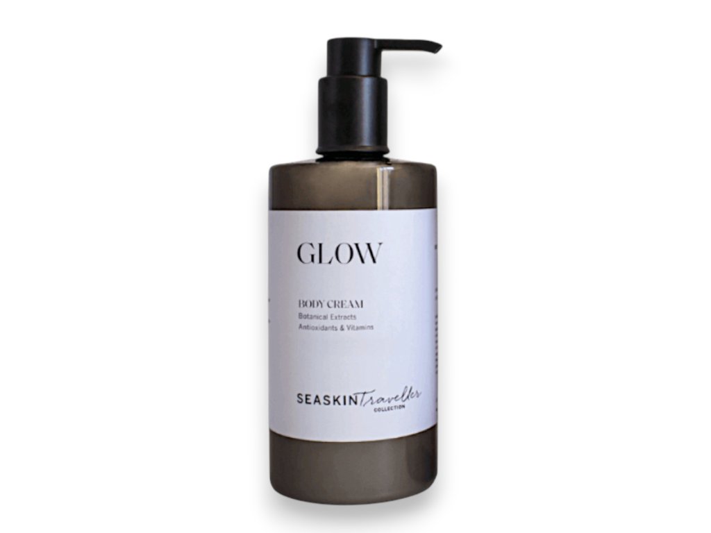 Glow SEASKIN Traveller Body Cream è pensata per l'uso quotidiano e contiene ingredienti attivi naturali al 100%. È ricco di vitamine e antiossidanti naturali che restituiscono elasticità e levigatezza alla pelle e la proteggono dai radicali liberi, in particolare quelli causati dalla luce solare.