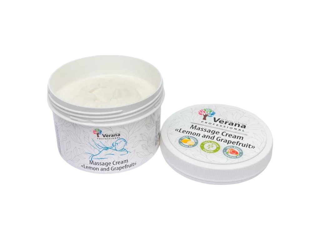 La Crema da Massaggio al Limone e Pompelmo Verana è stata creata per una cura efficace del corpo, per vari tipi e tecniche di massaggio, nonché per i trattamenti corpo SPA.