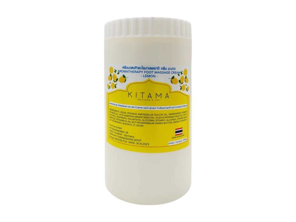 La crema per massaggio corpo e piedi al limone KITAMA è ideale per l'aromaterapia e il massaggio ai piedi. È utilizzata per massaggi thailandesi, massaggi benessere, fisioterapia, pedicure, ecc. Grazie al piacevole profumo fresco del limone, ha effetti stimolanti.