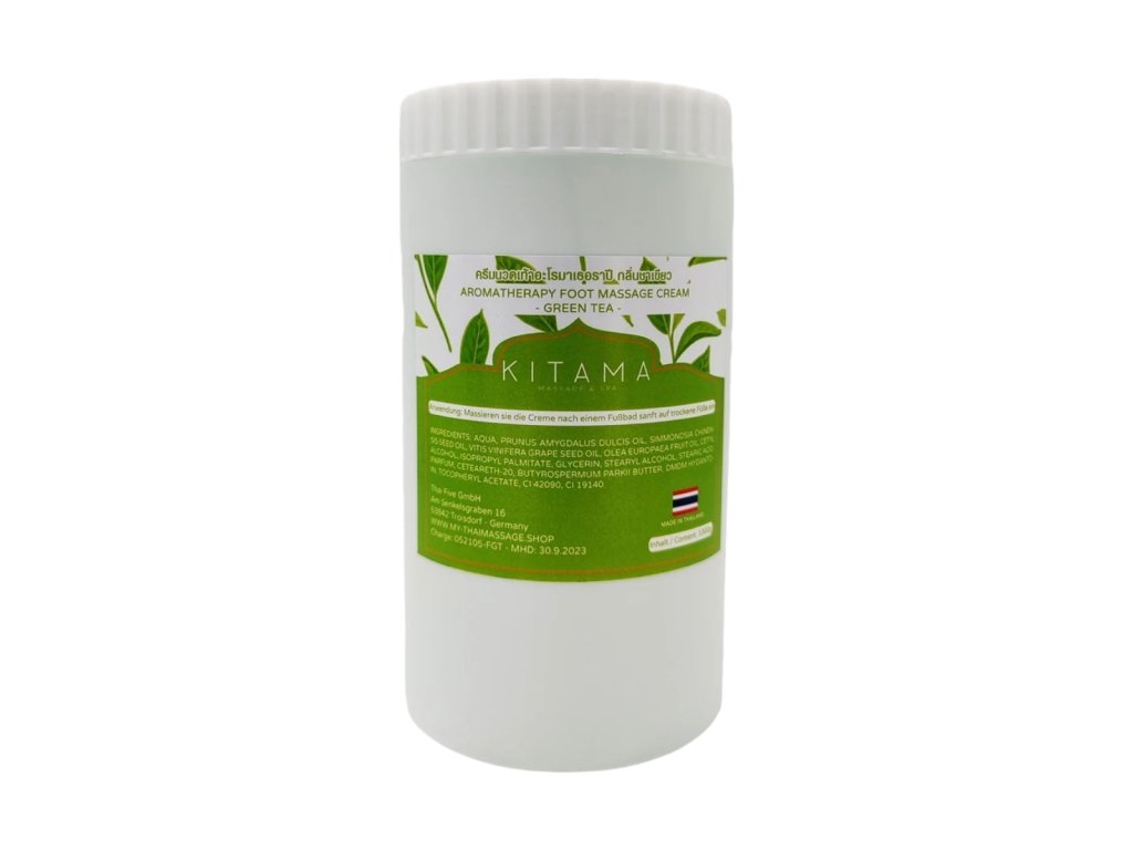 La crema per massaggi corpo e piedi al tè verde KITAMA è ideale per l'aromaterapia e il massaggio dei piedi. Viene utilizzato nel massaggio thailandese, nel massaggio benessere, nella fisioterapia, nella pedicure, ecc. Grazie al gradevole profumo di tè verde, ha un effetto calmante.