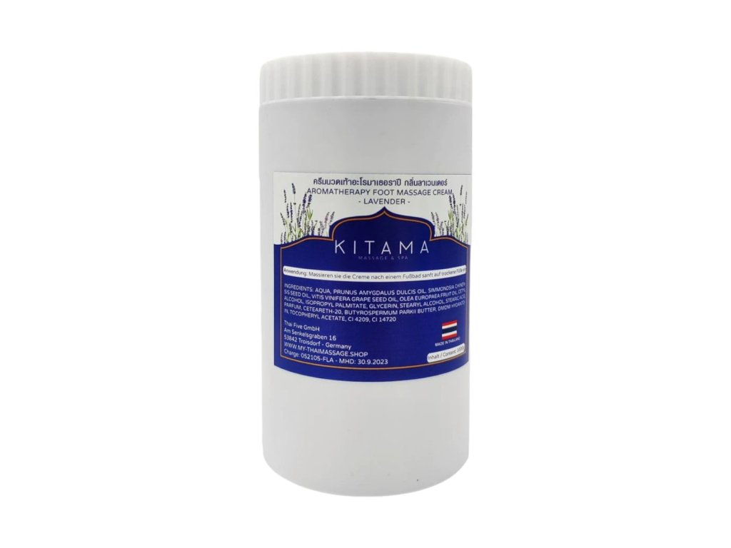 La crema per massaggio corpo e piedi alla lavanda KITAMA è ideale per l'aromaterapia e il massaggio ai piedi. Viene utilizzata per il massaggio thailandese, il massaggio benessere, la fisioterapia, la pedicure, ecc. Grazie al piacevole profumo floreale di lavanda, ha effetti calmanti.