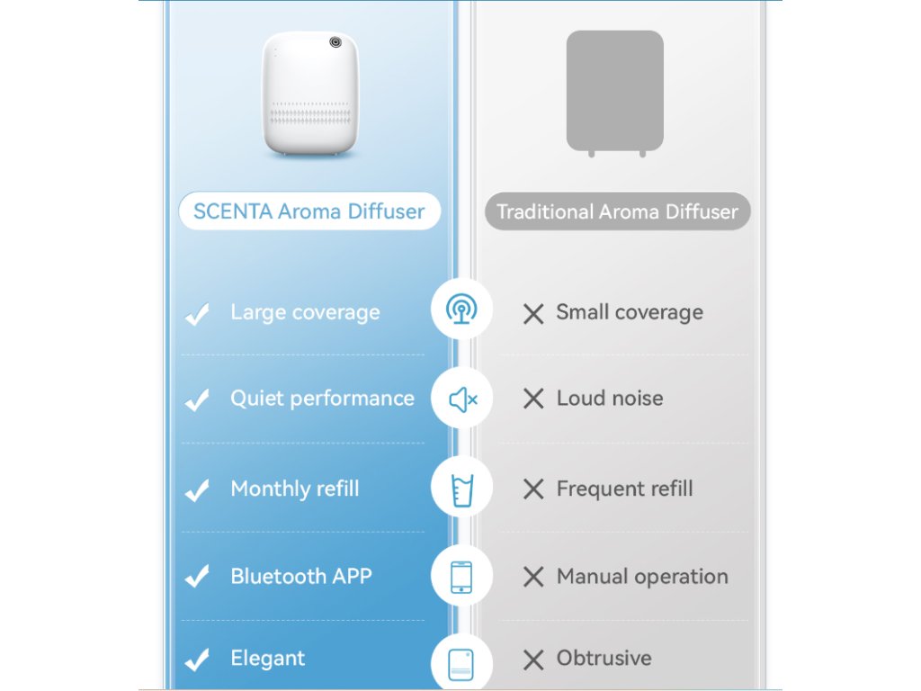 Silenzioso, resistente e potente, ridefinisce la diffusione della fragranza in spazi fino a 200 metri quadrati. Con un serbatoio di olio da 400 ml, puoi goderti una fragranza ininterrotta fino a un mese.