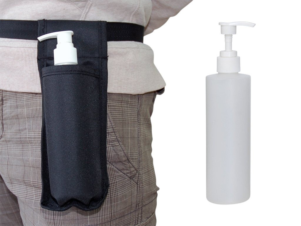 Un flacone con dispenser progettato per un riscaldatore elettrico per olio da massaggio. Il flacone può essere rimosso dal riscaldatore e manipolato liberamente, oppure riposto in una fondina da cintura, dove sarà sempre a portata di mano durante il lavoro.
