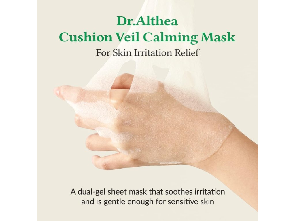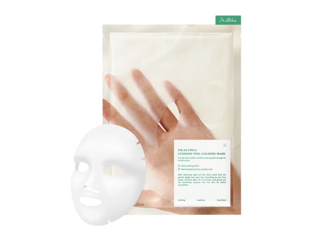 Dr. Althea Cushion Veil Calming Mask - Maschera Calmante è una maschera in tessuto rinfrescante studiata per lenire le irritazioni e ridurre i rossori, pur essendo delicata anche sulle pelli sensibili.