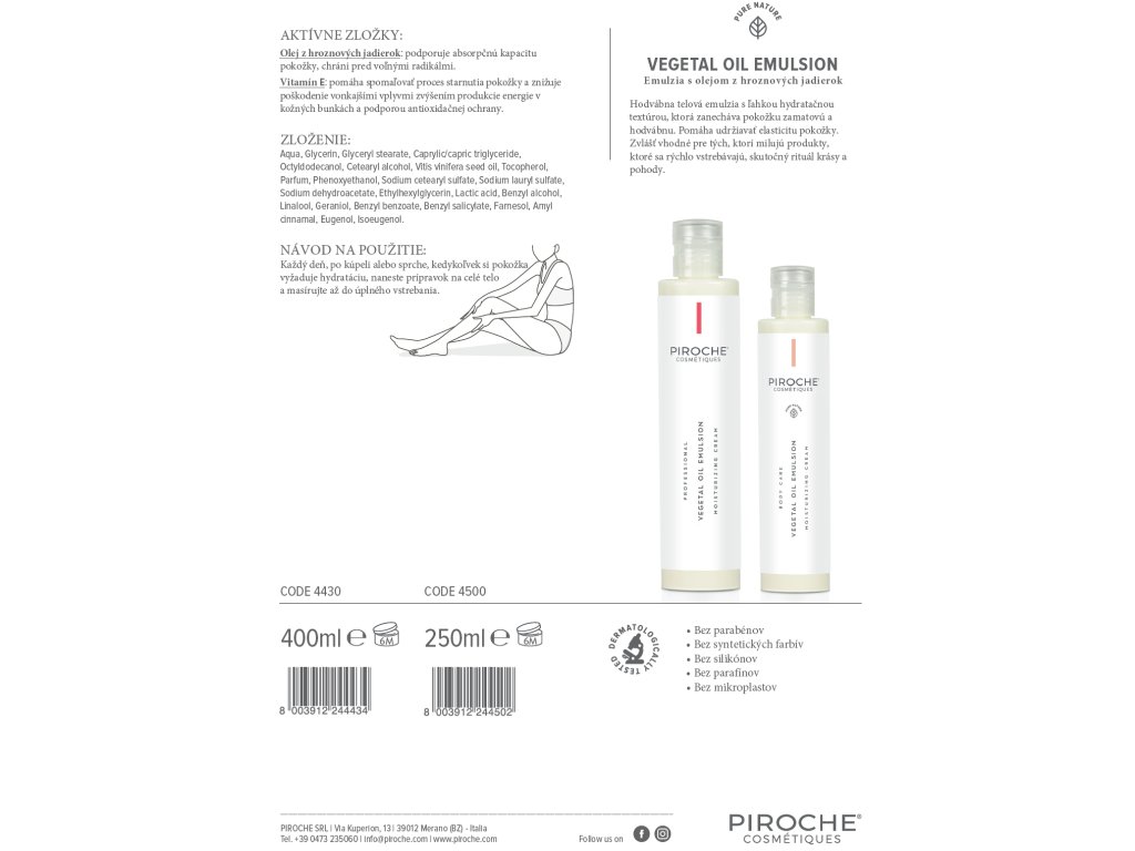 Emulsione all'olio di vinaccioli 250ml BODY CARE by PIROCHE