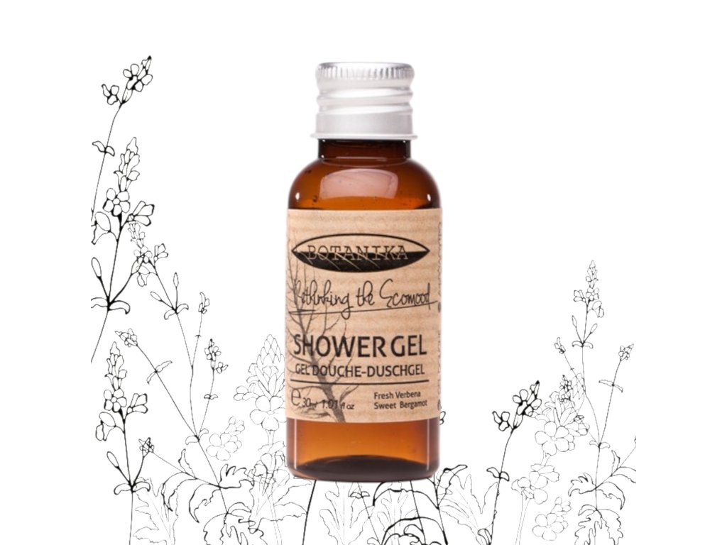 Il gel doccia Botanika Verbena e Bergamotto è arricchito da una composizione dal fresco profumo di verbena e bergamotto. Ideale per l'uso quotidiano, si adatta a qualsiasi ambiente, donando un tocco di raffinatezza e freschezza a ogni ambiente. Questo cosmetico ecologico è realizzato senza conservanti, senza parabeni e non è testato sugli animali. I dispenser sono riciclabili al 100%, salvaguardando così la natura. Il design stilizzato dei flaconi Botanika da 30 ml, che ricorda i vecchi flaconi delle farmacie, conquisterà gli ospiti dell'hotel con la sua originalità e una piacevole sorpresa: un ritorno alla storia. Deterge a fondo la pelle, lasciandola liscia, fresca e delicatamente profumata con un profumo agrumato.