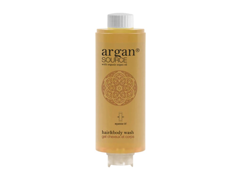 Cosmetici per hotel ARGAN SOURCE, a base di olio di argan biologico. Un elisir di bellezza diventato un must della cosmesi grazie ai suoi antiossidanti. Svolge inoltre un'azione emolliente e idratante. L'incantevole fragranza e l'elegante finitura satinata trasporteranno i vostri ospiti nell'atmosfera del Marocco. Una qualità sofisticata ispirata all'oro del deserto.