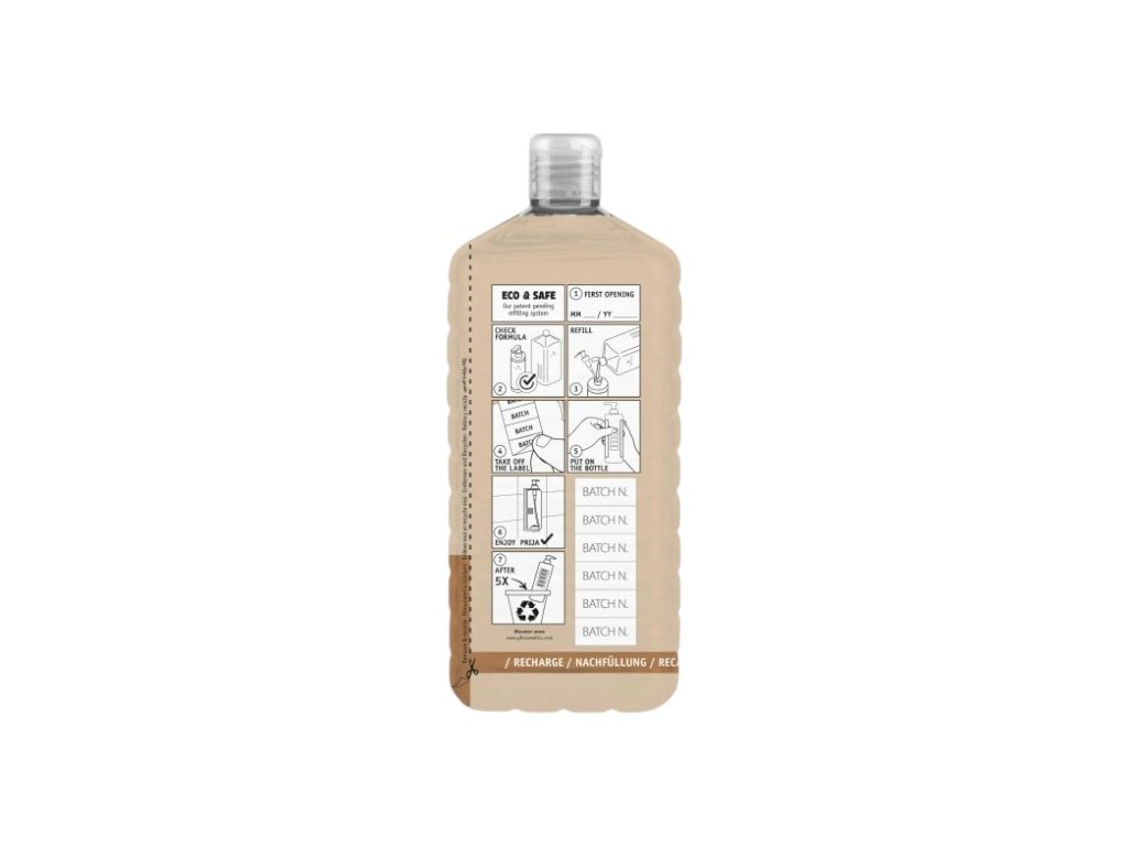 Il flacone è realizzato in PET riciclato, la confezione è riciclabile, prodotto VEGANO, senza alcol, senza petrolati, senza siliconi, senza EDTA, senza BHT.