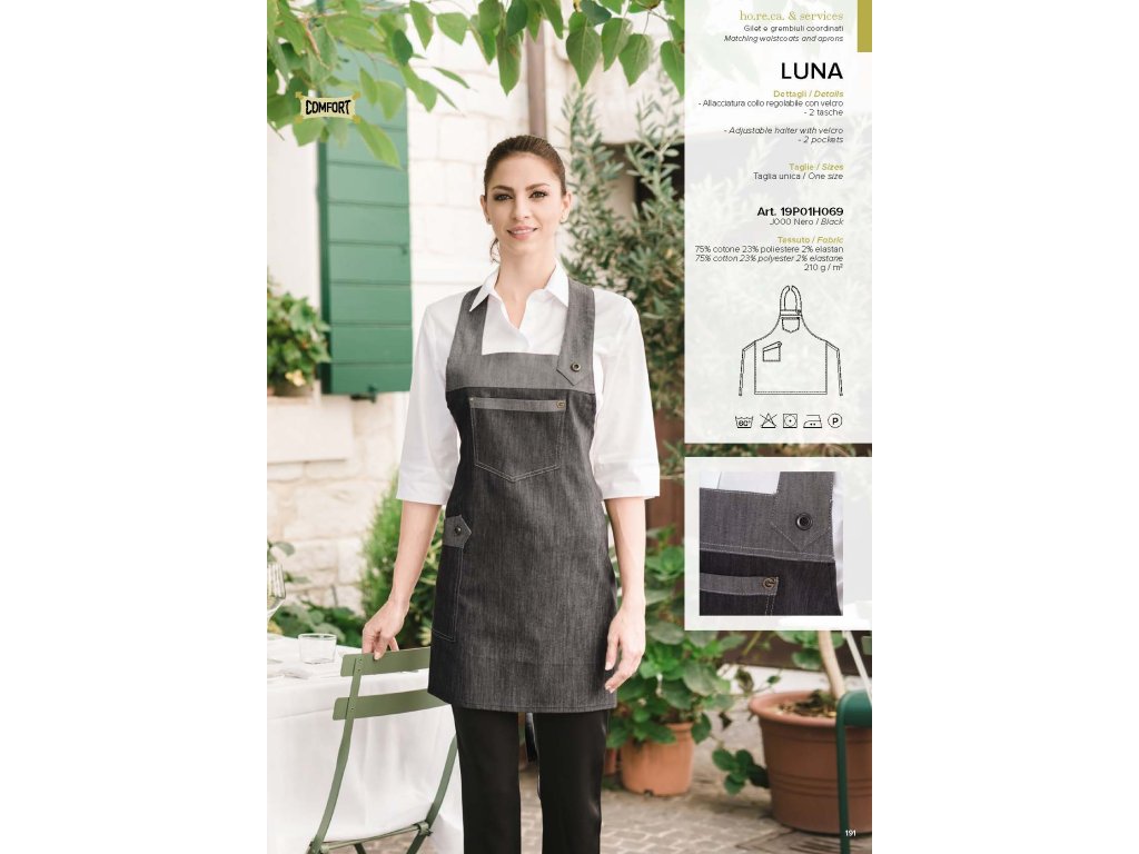 Il grembiule Luna è stato progettato per integrarsi al meglio in ambienti con arredi shabby chic, tra cui spiccano numerose nuove attività come panetterie, pasticcerie, cioccolaterie e gelaterie.