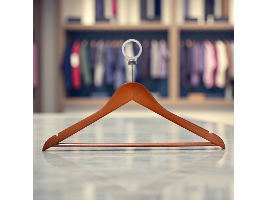 Sono dotate di un anello antifurto cromato che ne garantisce la tenuta all'interno della stanza. L'aggiunta di un braccio portapantaloni in legno le rende particolarmente versatili, adatte ad appendere diversi tipi di indumenti. Le tacche sui bracci offrono una soluzione ideale per appendere i vestiti con cinghie, impedendone lo scivolamento e mantenendo un aspetto ordinato.