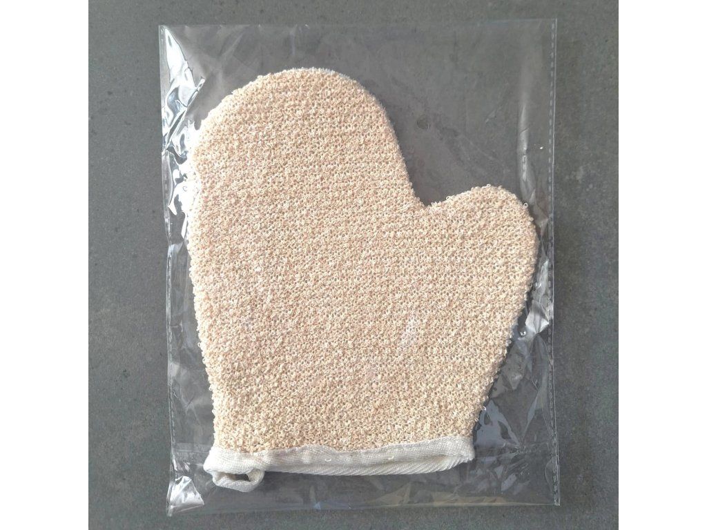 Ideale per l'uso quotidiano in salone o a casa. Da un lato presenta una parte esfoliante in lino e dall'altro un morbido cotone per un relax totale. L'interno è foderato in poliestere. Ogni guanto è confezionato singolarmente in una busta igienica e può essere lavato.