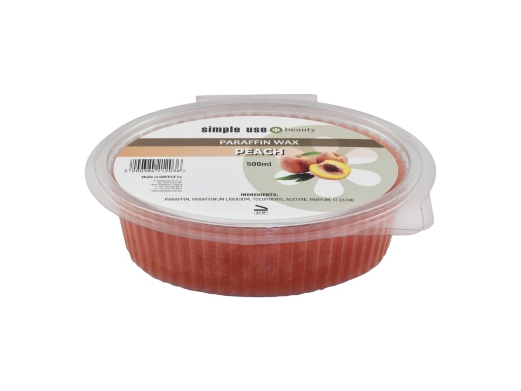 Cera cosmetica di alta qualità per impacchi alla paraffina. Viene utilizzata principalmente come impacco di paraffina per mani o piedi. Gli impacchi di paraffina al profumo di pesca possono essere utilizzati anche per impacchi locali sotto forma di termoterapia e per rilassare articolazioni e muscoli rigidi. Ha anche un effetto benefico contro l'invecchiamento cutaneo, apre i pori, rimuove le cellule morte, ammorbidisce la pelle e favorisce la guarigione. Con un impacco di paraffina, la circolazione sanguigna nella zona di applicazione migliora. Gli impacchi di paraffina per gli arti sono ampiamente utilizzati in manicure e pedicure.