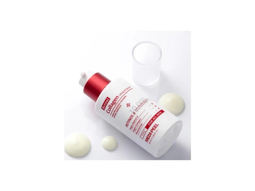 MEDI-PEEL Retinol Collagen Lifting Ampoule è un siero altamente efficace, studiato per rassodare e levigare intensamente la pelle. Questo siero combina il potere del retinolo e del collagene, che agiscono in sinergia per ridurre le linee sottili, migliorare l'elasticità della pelle e fornire un'idratazione profonda. L'uso regolare dona una pelle visibilmente più giovane, soda e radiosa.