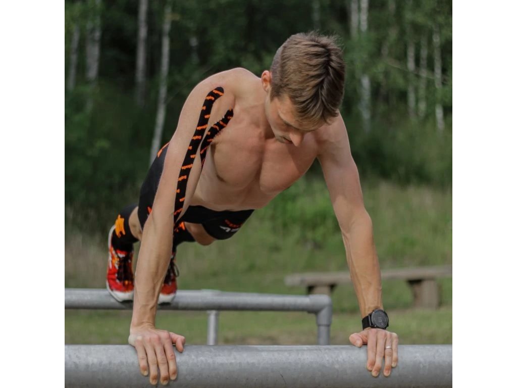 Spophy Kinesio Tape, grazie all'utilizzo di un adesivo medico di alta qualità, applicato direttamente sulla superficie del nastro, aderisce perfettamente al corpo dell'atleta anche in condizioni difficili. Spophy Kinesio Tape è perfettamente impermeabile, il che impedisce la desquamazione prematura della pelle a contatto con acqua, fango o sudore. L'atleta e il suo terapista possono quindi essere certi che Spophy Kinesio Tape rimarrà sulla pelle per tutta la durata della prestazione sportiva senza desquamarsi. Se applicato correttamente, Spophy Kinesio Tape mantiene la sua forte aderenza alla pelle fino a diversi giorni. L'adesivo medicale utilizzato è inoltre realizzato senza l'aggiunta di farmaci, il che, insieme al cotone al 100% che funge da materiale di supporto, riduce al minimo la possibilità di reazioni allergiche. Spophy Kinesio Tape può quindi essere utilizzato senza problemi anche da persone con pelle sensibile o bambini. Questo nastro è inoltre perfettamente traspirante, quindi non influisce negativamente sulle prestazioni sportive. L'atleta può quindi concentrarsi sulla prestazione senza avvertire sensazioni spiacevoli nelle aree di applicazione del nastro.