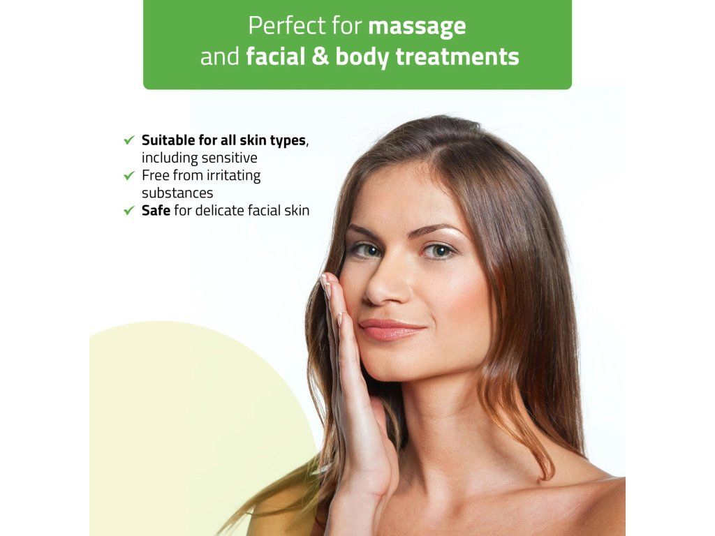 Confezione: Bottiglia in plastica con pratica pompa che consente un dosaggio igienico e rapido. Ideale per saloni di massaggio professionali e studi SPA.