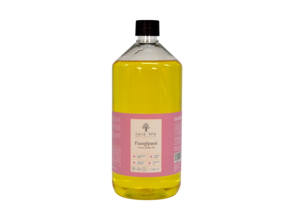 Olio per Massaggio Corpo Frangipani (Frangipani) - GAIA SPA.L'olio per massaggi Frangipani donerà alla vostra pelle una sensazione di lusso. Questo olio, grazie al suo affascinante ed elegante profumo floreale, creerà un'atmosfera di relax, gioia, fantasia e creatività. L'olio per massaggi Frangipani vi permetterà di abbandonarvi a un relax esotico e di indurre una sensazione di euforia, lasciando la vostra pelle meravigliosamente profumata e donandole un colorito radioso.