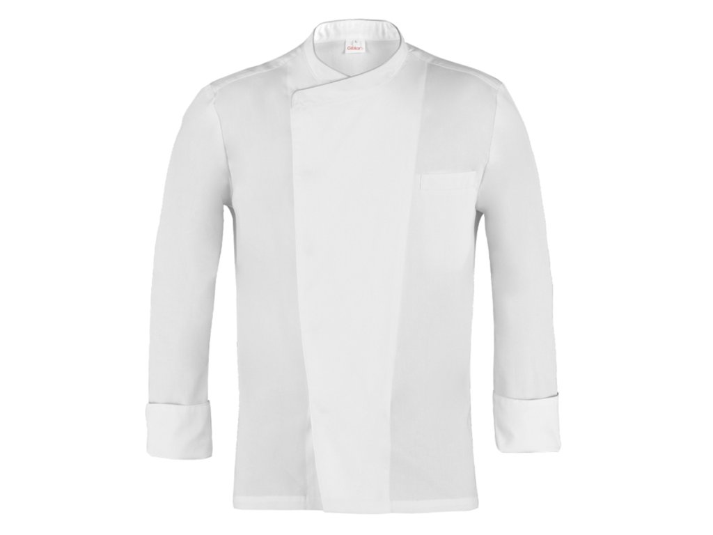 Il rondon da chef Patrizio ha un taglio slim fit ma garantisce il massimo comfort nei movimenti. Il capo è dotato di colletto alla francese, chiusura con bottoni nascosti, taschino sul petto e portapenne.