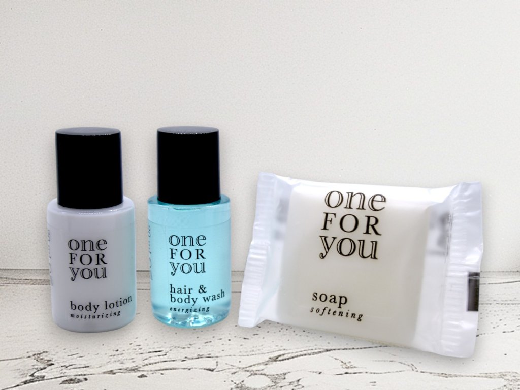 ONE FOR YOU: essenziali senza tempo One for You è la linea di cosmetici per hotel più semplice e minimalista, ma ideale per gli ospiti più esigenti grazie ai numerosi accessori che completano i prodotti tradizionali. È una gamma ricca e dal design accattivante. I prodotti sono dermatologicamente testati e realizzati con proteine del grano, in grado di nutrire la pelle, donare lucentezza, morbidezza e volume ai capelli e sono riconosciuti per le loro eccellenti proprietà nutritive, protettive, emollienti e ristrutturanti.