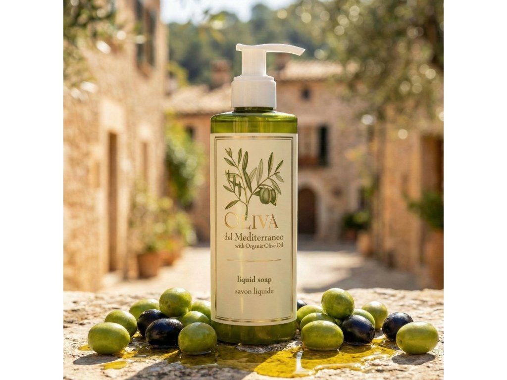 "Oliva del Mediterraneo" è un marchio di cosmetici per hotel che utilizza olio d'oliva biologico e si basa su antichi segreti di bellezza italiani. I prodotti sono studiati per detergere e idratare delicatamente pelle e capelli e sono noti per la loro fresca fragranza mediterranea, che combina note di bergamotto, eucalipto, fiori d'arancio, timo, ylang-ylang e altro ancora.