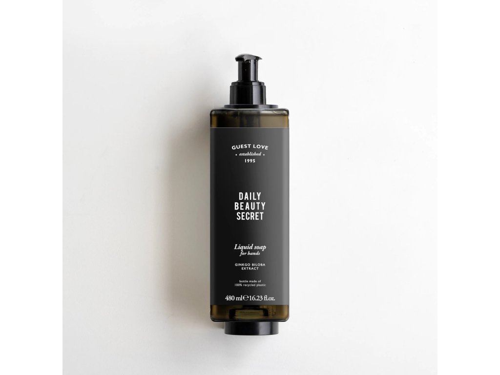 Il sapone liquido Guest Love deterge delicatamente la pelle, la sua formula delicatamente profumata è arricchita con estratto di Ginkgo Biloba