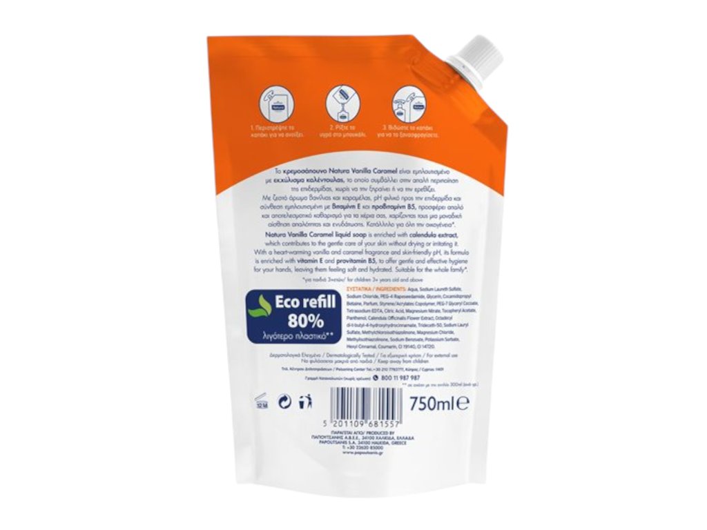 Sapone liquido 750ml NATURA Vaniglia e caramello (ricarica)