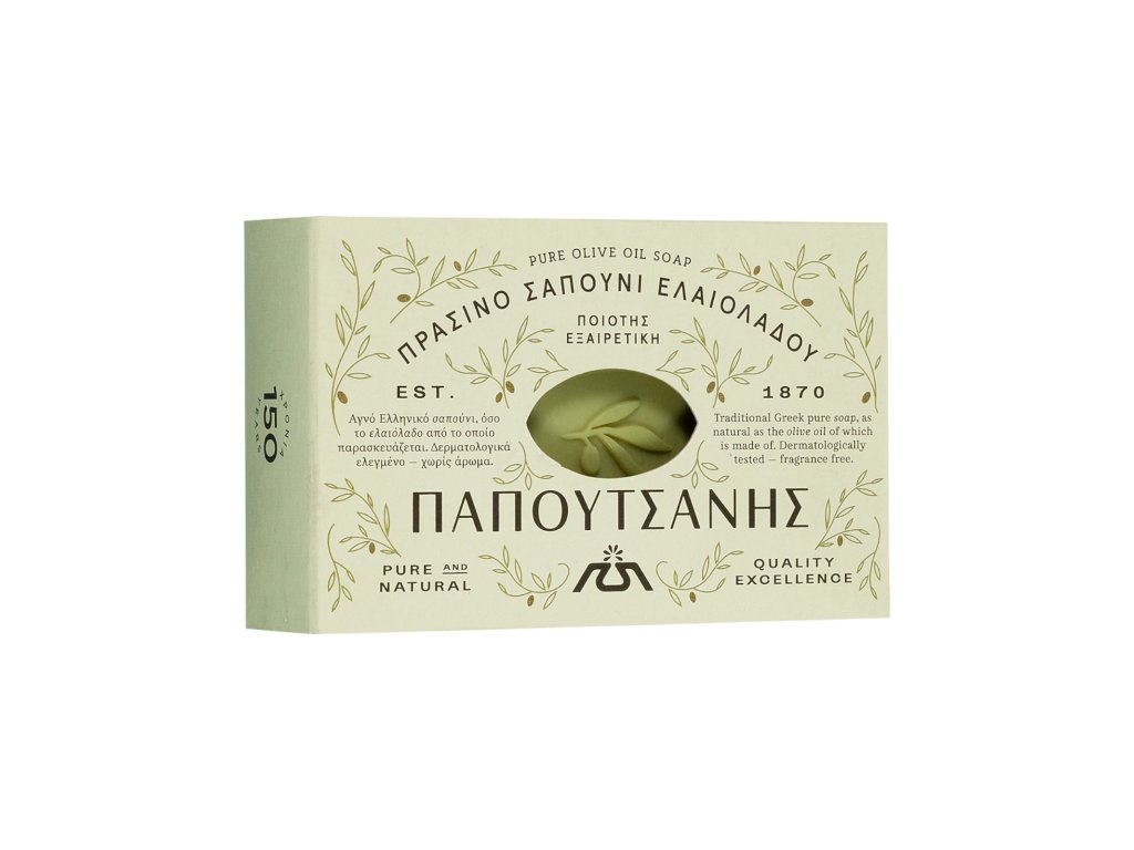 Papoutsanis produce saponi all'olio d'oliva puro di qualità eccezionale dal 1870, con cura e competenza. Un prodotto naturale prodotto in Grecia che deterge delicatamente, idrata e lenisce la pelle con gli effetti nutrienti dell'olio d'oliva. Adatto a tutti i tipi di pelle.
