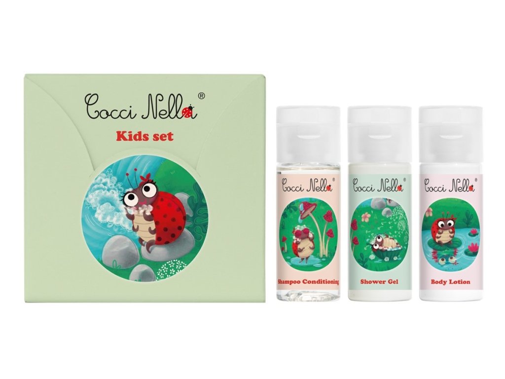 Un delicato set da hotel dedicato ai piccoli viaggiatori. Confezioni giocose e flaconi con tappo flip-top garantiscono tanto divertimento e sicurezza per i bambini. Il set per bambini comprende tre prodotti (shampoo, bagnoschiuma e crema corpo) con formule delicate arricchite con estratti di riso e malto, dalle proprietà emollienti. Allegrini Amenities Italy opera nel settore cosmetico da oltre 30 anni, conquistando un solido posizionamento tra i leader mondiali nel settore dei servizi alberghieri in termini di produzione e distribuzione. Rispetto della tradizione, eccellenza, origine orgogliosamente italiana e ambizioni internazionali: la bussola che guida l'azienda ha una sola direzione: 100% Made in Italy di altissima qualità.