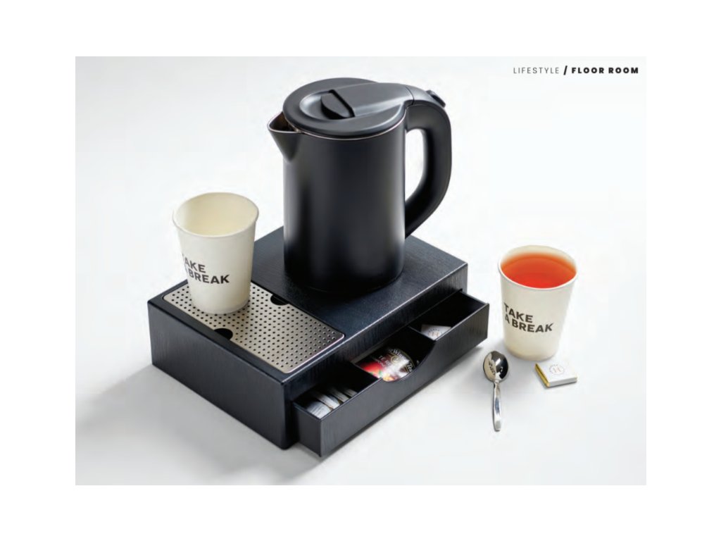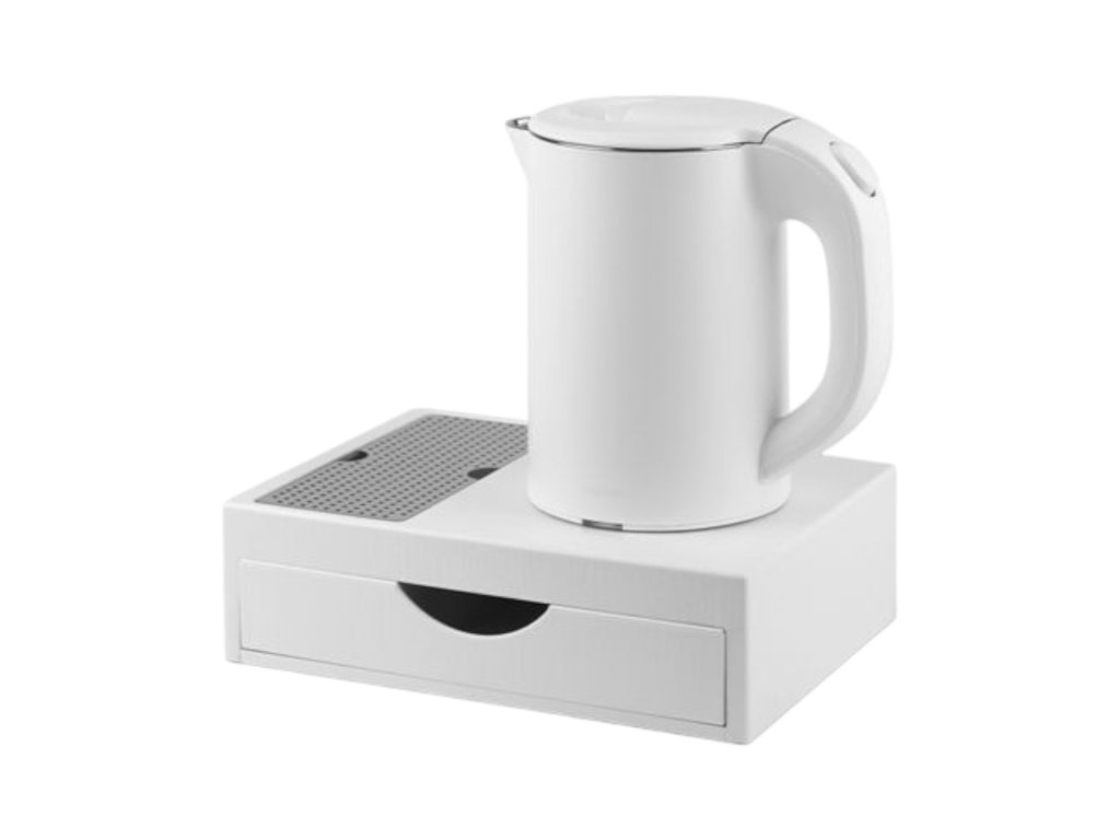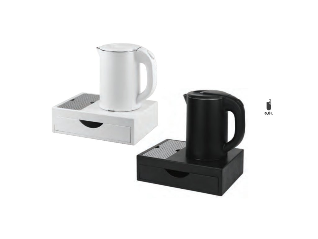 Set completo con bollitore elettrico e vassoio in ABS con cassetto a tre scomparti e portabicchieri