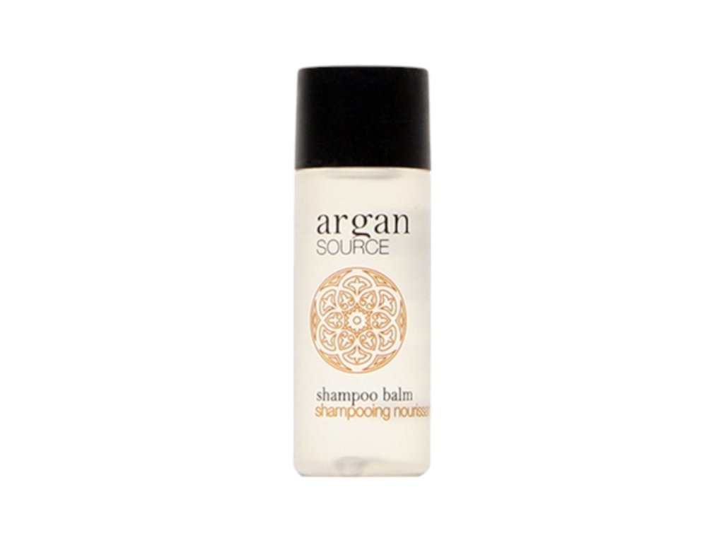Cosmetici per hotel ARGAN SOURCE, a base di olio di argan biologico. Un elisir di bellezza diventato un must nei prodotti cosmetici grazie ai suoi antiossidanti. Ha anche effetti emollienti e idratanti. Il profumo incantevole e l'elegante finitura satinata trasporteranno i vostri ospiti nell'atmosfera del Marocco. Qualità sofisticata ispirata all'oro del deserto.